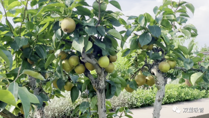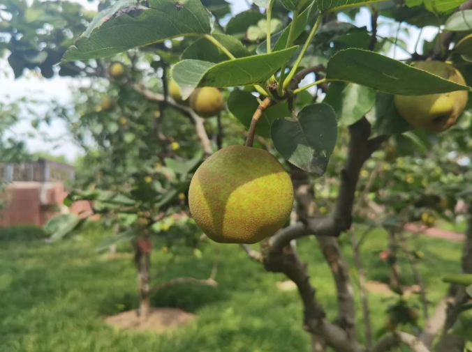 一眼看去,林子里的十來棵梨樹,樹上的果子又大又圓,一陣風吹過,梨子跟樹葉一起搖擺,仿佛下一秒就要脫離樹枝馬上要掉下來嘞~
