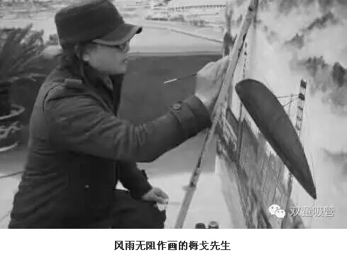 在義烏,有一位“夢想畫家”梅戈先生,他曾經每天都拿著畫架到義烏最噪雜、人流車流最多的國際商貿城市場門口現(xiàn)場作《世界的義烏》主題油畫,每天創(chuàng)作4小時,風雨無阻!