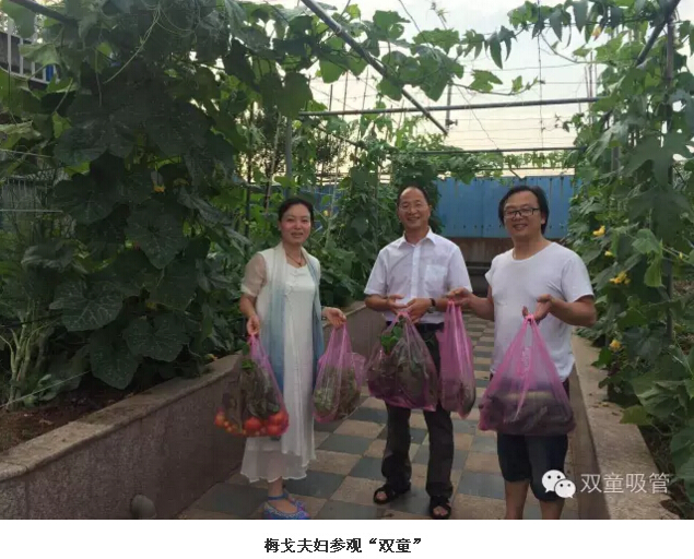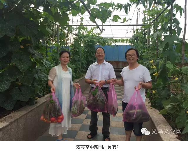 參觀完樣品室,樓總帶我們上九樓露臺雙童菜園,上下兩層兩千平米的樓頂,滿滿種了絲瓜、番茄、長豆、木耳菜、生菜、辣椒還有葡萄等數(shù)十種蔬果,郁郁蔥蔥像個小農場,樓總走入菜園給我們摘了絲瓜、黃瓜、茄子,夫人早在二樓摘起來圣女果,看她吃得滿口香甜的樣子!真是醉了!早聽過樓總利用樓頂改造種菜,滿足自身常年需求,樓頂一樣經過精心設計、防漏處理后堆上一米二的泥土,種一年四季蔬果,用企業(yè)里砍伐下來的樹枝碎屑和剩菜飯等進行發(fā)酵,幾個月后成為蔬果種植的最環(huán)保的有機肥!