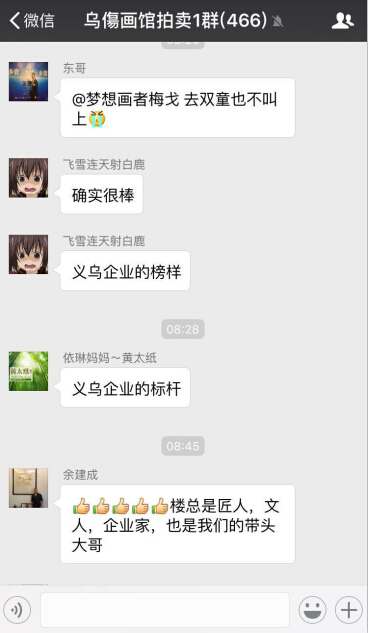 他也建立了書畫作品微拍群來支持義烏藝術的發(fā)展,每天在微信拍賣一幅畫,零元起拍五百封頂,受到了大批民眾的狂熱追捧,也吸引了不少知名書畫家加入,規(guī)模及影響力不斷擴大,被中宣部黨建辦公室翁淮南先生譽為“開創(chuàng)拍賣先河”!