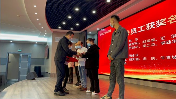 當(dāng)頒獎(jiǎng)音樂響起時(shí),現(xiàn)場所有員工鼓掌表示祝賀,總經(jīng)理李二橋?yàn)椤皟?yōu)秀員工”們頒發(fā)榮譽(yù)證書和厚厚的激勵(lì)紅包。在場員工們都深深地感受到了公司對(duì)一線員工的重視及肯定!相信對(duì)每一位“優(yōu)秀員工”來說都意義非凡,對(duì)全體員工來說也是莫大的鼓舞和激勵(lì)!
