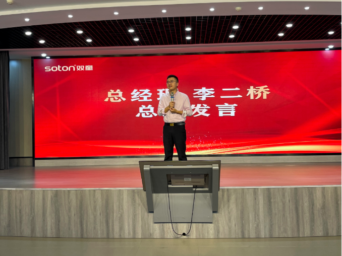 在大會(huì)最后,“雙童”總經(jīng)理李二橋作總結(jié)發(fā)言。公司前三季度經(jīng)營情況同比增長情況良好,雖然經(jīng)歷八月疫情,但因?yàn)椤半p童”人的通力合作,已經(jīng)盡最大可能降低負(fù)面影響,感謝全體員工的辛勤付出!李總還在發(fā)言中強(qiáng)調(diào),今年國內(nèi)防疫局勢緊張,全體員工應(yīng)繼續(xù)積極配合疫情防控要求,及時(shí)響應(yīng)上級(jí)號(hào)召。總經(jīng)理李二橋在員工大會(huì)上發(fā)言另一方面,“雙童”現(xiàn)在正著力自動(dòng)化升級(jí),相信在大家的共同努力下,明年生產(chǎn)效率定會(huì)有所提升,讓一線員工能夠得到更好的福利待遇。感謝一路陪伴“雙童”成長的所有“雙童”人,在大家的陪伴與付出下,“雙童”一定會(huì)一年比一年好!
