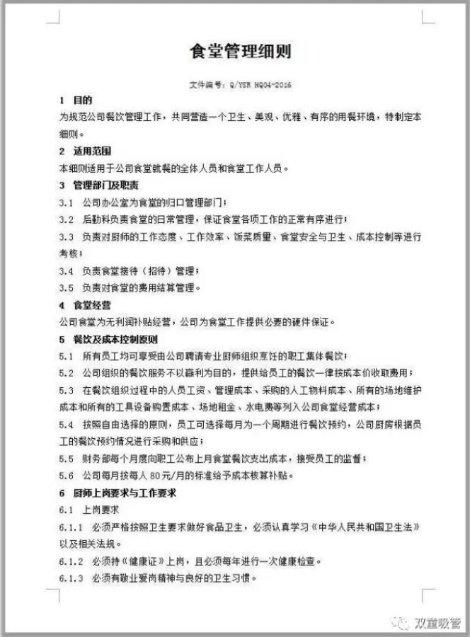 “雙童”食堂管理細(xì)則,涉及到餐飲管理的各個方面