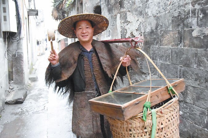樓仲平挑“貨郎擔”的照片