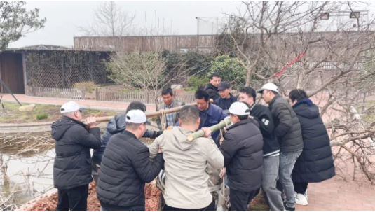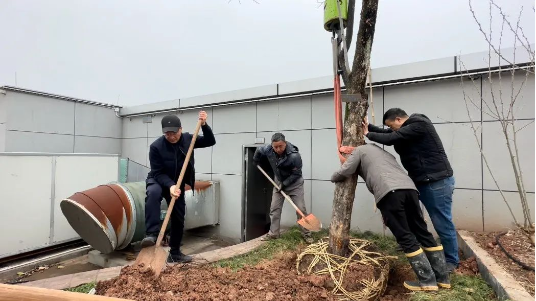 在空中花園里,大家嘿呦嘿呦的正在賣力地栽樹。俗話說得好,團結(jié)就是力量,大家一起培土、踩實、澆水,每道工序都一絲不茍,每個流程認(rèn)真細致!