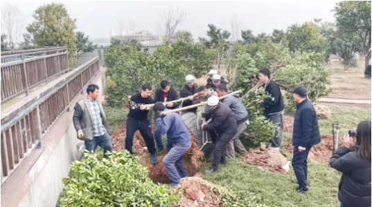 其實啊,主要是因為購買的果樹都是重量級“嘉賓”,所以“雙童”都是通過大吊機將這些果樹運送上空中生態(tài)園的!我們的當(dāng)家人樓總更是親自從旁指揮,護送大樹成功上樓!