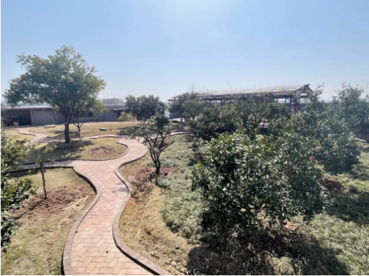 吊機把一棵棵果樹送上“雙童”二期廠房樓頂