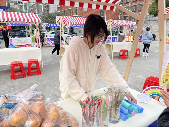 ,吸管妞可是絲毫不敢大意,做足了功課。集市開(kāi)始前,吸管妞就和“雙童”各個(gè)創(chuàng)業(yè)體反復(fù)商議確定售賣的產(chǎn)品,大家分工明確,團(tuán)結(jié)協(xié)作,干勁十足,呈現(xiàn)出一派熱火朝天的景象。