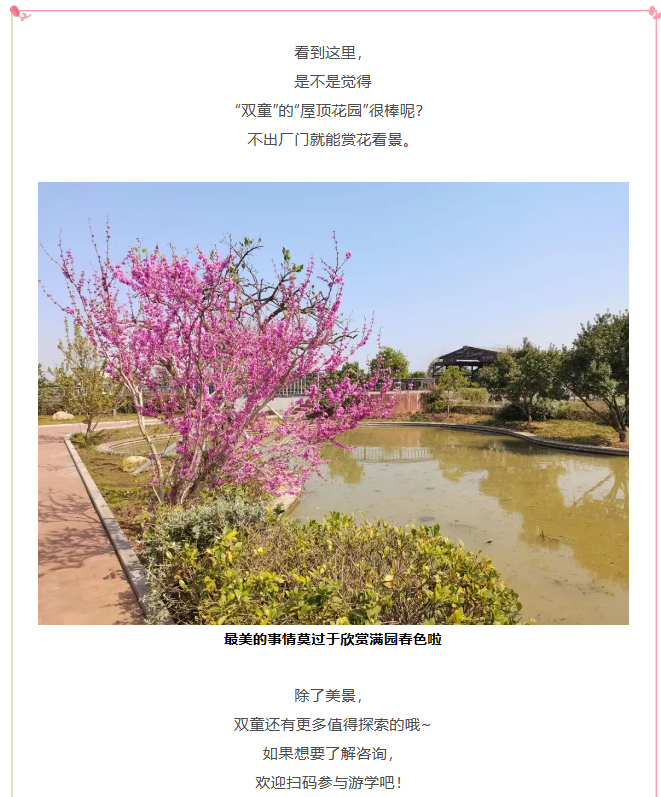 這么一看,“雙童”花朵的品種也真不少。在欣賞美景大飽眼福的同時,還有更讓人驚喜的呢!可以看到,果樹上的花謝了以后,結(jié)出了不少的小果實,再過幾個月,“雙童人”又有口福啦