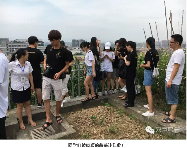 來(lái)到屋頂菜園時(shí),看到這么多新鮮的蔬菜瓜果,大家都淡定不起來(lái)了呢!吸管妞向大伙介紹了“空中菜園”的總面積有近800平方米,每個(gè)種植區(qū)的土層均有1米2深,看到這里大家紛紛開(kāi)始敬佩樓總對(duì)工廠的設(shè)計(jì)。