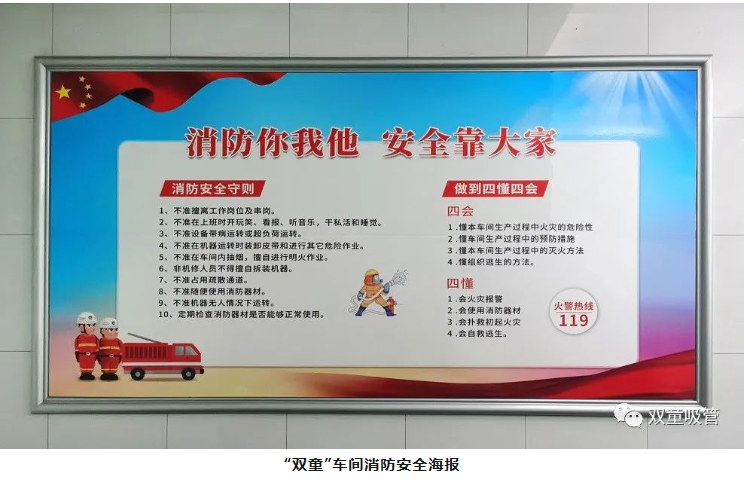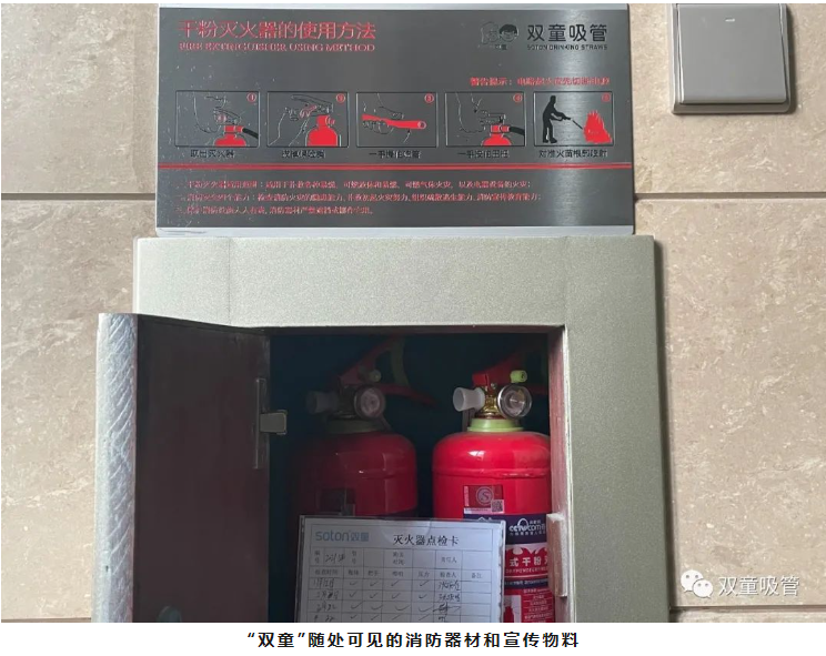 在“雙童”,各類宣傳標(biāo)識、消防器材隨處可見,安全意識深入人心!正是因?yàn)椤半p童”對安全生產(chǎn)的這份敬畏之心,才讓每一位員工心中都筑起了一道安全防線。