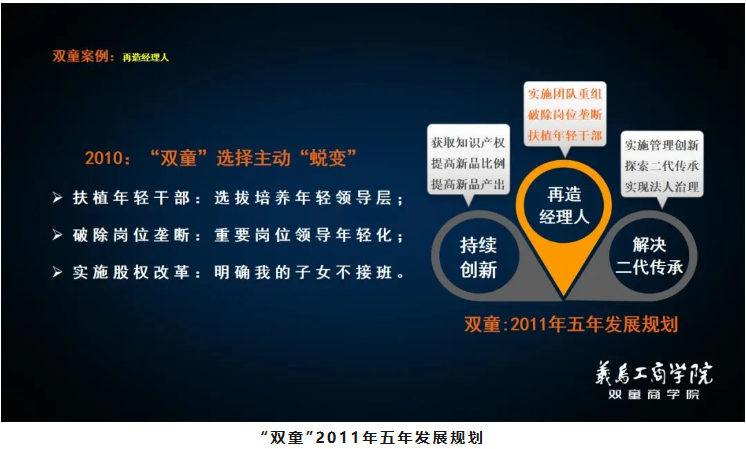 在傳統(tǒng)企業(yè)經(jīng)歷幾十年發(fā)展后,部分管理者必然會(huì)開始出現(xiàn)“活力遞減”現(xiàn)象,這是典型的“經(jīng)理人老化”現(xiàn)象。2010年,樓仲平在理解人性活力的“自然遞減”的現(xiàn)象以及經(jīng)理人老化自然規(guī)律后,下定決心通過組織變革來實(shí)施解決“經(jīng)理人老化”問題:明確扶植年輕干部,選拔培養(yǎng)優(yōu)秀的年輕領(lǐng)導(dǎo)層,解決二代傳承接班等問題。