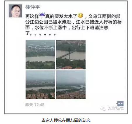 6月29日 一大早起來,朋友圈到處都在傳“發(fā)大水”的消息,我們的當家人樓總也在朋友圈里發(fā)布實時消息提醒大家注意安全。不過吸管妞卻覺得,“鐵公雞”當家人肯定在偷偷心疼這些雨水,要是都像雙童一樣收集起來,那該有多好呀!