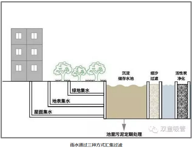如此實用的系統(tǒng)是如何形成的呢?妞今天就給大伙來說說!其實秘訣就是在屋頂、路面、綠化帶中做好雨水收集點,用地下管道把它們連成一個整體,經過科學過濾,匯集到一個占地700多平方米、總裝水容量近4000噸的雨水收集池。