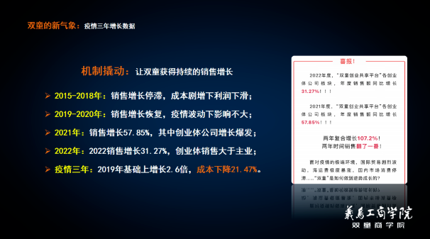 走過百米文化長廊,通過文字和圖片見證了“雙童”不同階段的成長,了解“雙童”企業(yè)經(jīng)營的方方面面。獨特的“家文化”與“組織關(guān)系三原則”讓調(diào)研組們紛紛點贊,尤其是近幾年讓“雙童“實現(xiàn)逆勢增長的自主制創(chuàng)業(yè)裂變機制,這種組織創(chuàng)新更是讓他們認可并大為稱贊。