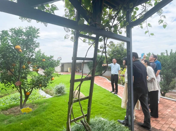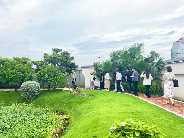 “雙童”的空中花園遠近聞名,調(diào)研組一行主動提出參觀!當領(lǐng)導們來到空中生態(tài)園時,看到近5000平方米的屋頂竟無一處衛(wèi)生死角,取而代之的是瓜果飄香、一片生機,豐富員工們的日常生活,讓大家感受到有溫度的企業(yè)文化。