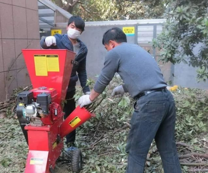 用木條粉碎機(jī)將樹枝進(jìn)行粉碎