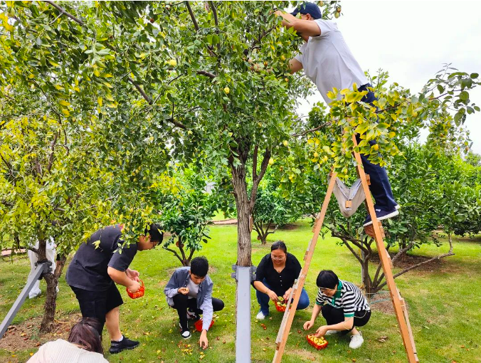 獨樂樂不如眾樂樂!在“雙童”,成熟的果子從來都是大家同享的。聽到樓總要去屋頂打棗的消息,大家早就按捺不住喜悅的心情,三五成群,自發(fā)地提著自己的小籃子加入到“打棗”隊伍中來!