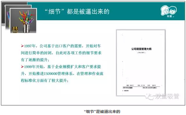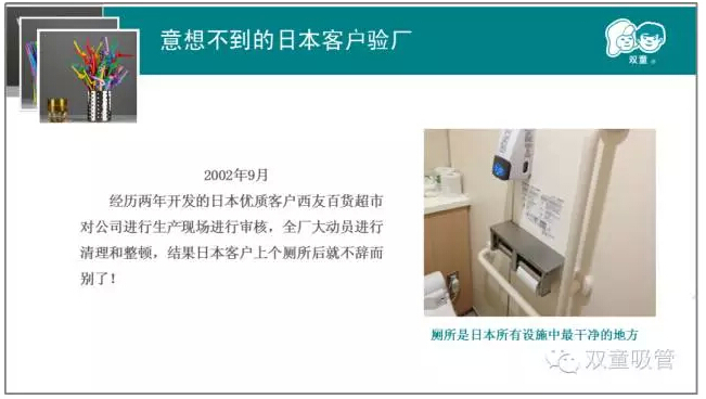 “細(xì)節(jié)”是被逼出來的,通過和日本客戶的合作,我們不斷的提升自我,通過對(duì)車間、寢室進(jìn)行改造等一系列措施來提升產(chǎn)品的質(zhì)量。