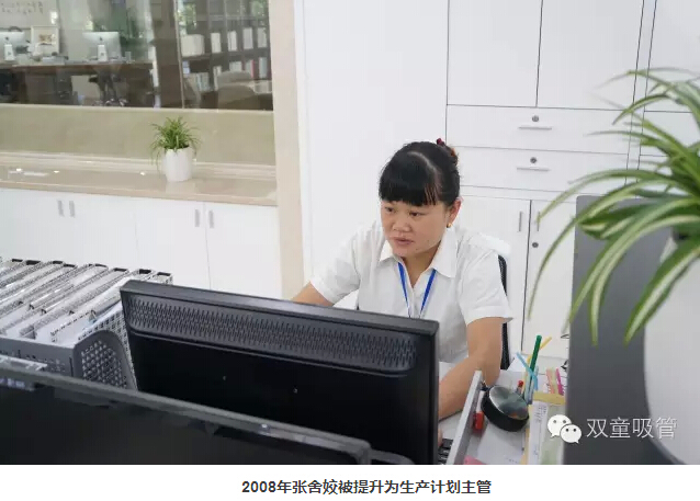 后來,她又成為了加管工,由于工作優(yōu)異,領(lǐng)導(dǎo)提拔她做了班長。結(jié)婚生子后,她回到公司又相繼做了質(zhì)檢員、終檢員等工作。2008年,她被提升為生產(chǎn)計劃主管,這一干就干到了現(xiàn)在。