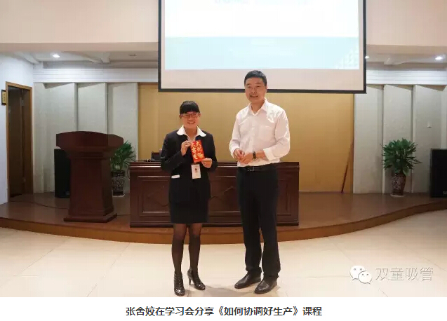生產(chǎn)計劃工作有時很繁瑣,她要對生產(chǎn)訂單和任務(wù)進行協(xié)調(diào),做整個生產(chǎn)安排和銷售銜接統(tǒng)籌的工作,所以她的電話一直是公司里最多的那一個。而在“雙童”開學(xué)習(xí)會以來,她也先后作為講師講了好幾堂的課,給大家培訓(xùn)生產(chǎn)計劃相關(guān)知識。她說,在給大家?guī)硖嵘耐瑫r,還給自己帶來了前所未有的“講師”體驗,這是非常難忘的經(jīng)歷!