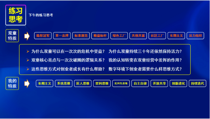 一千個人眼中有一千個哈姆雷特,36位同學來自各行各業(yè),帶著自己的經驗認知,以及“開門”思維,一齊就多個“雙童”案例的開放式問題進行總結歸納,并探討各自企業(yè)復制經驗的可能性。