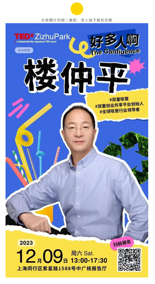 “雙童”創(chuàng)始人樓仲平作為企業(yè)家,關(guān)注員?生活與工作的每?處細(xì)節(jié),在成為吸管行業(yè)領(lǐng)導(dǎo)者的同時(shí),還打造了一家“花園式”工廠,在推動(dòng)工廠節(jié)能減排建設(shè)中做了很多的努?。TEDxZizhuPark組織方敏銳地捕捉到其在商業(yè)領(lǐng)域的成就,特邀作為開(kāi)場(chǎng)嘉賓演講人分享。