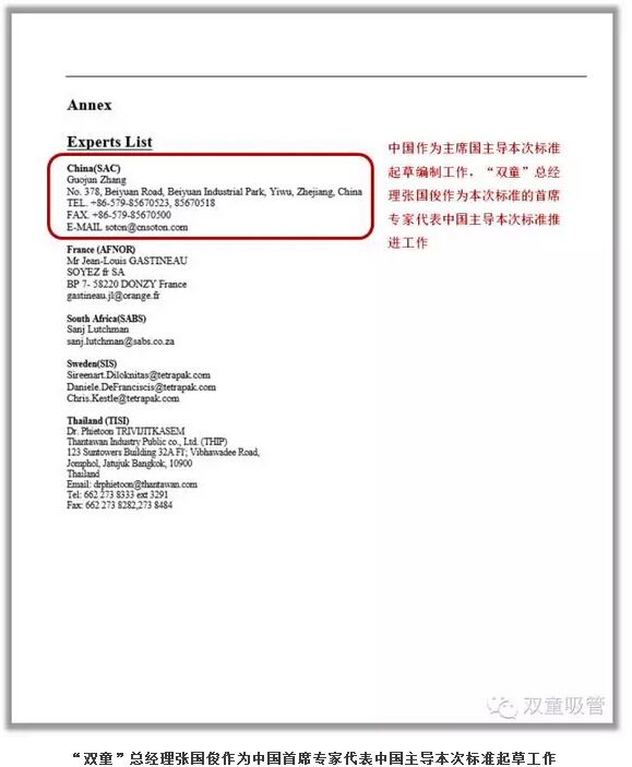 從2008年向ISO國際標準化組織提交ISO《聚丙烯飲用吸管》國際標準的起草申請書,到2016年該組織正式向全球162個成員國下發(fā)ISO國際標準文本,“雙童”整整努力了9年,先后在6個國家召開了多次專家討論會,最終“打敗”包括“日本標準”在內(nèi)的全球眾多吸管產(chǎn)品標準,拿下“桂冠”,讓全球吸管行業(yè)向中國標準看齊。