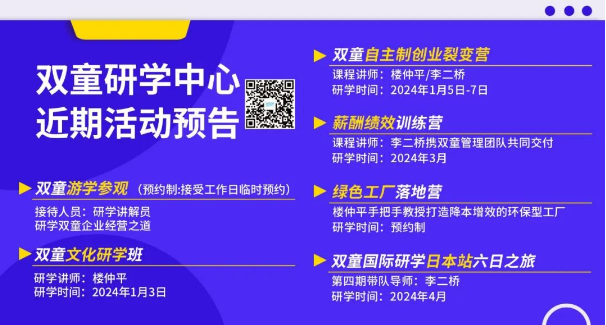 令人欣慰的是,學(xué)員們通過游學(xué)對(duì)“雙童”有了更深了解的同時(shí),也在整個(gè)學(xué)習(xí)的過程中找到了自己對(duì)企業(yè)經(jīng)營的答案!也隨著往期學(xué)員地不斷地推廣,越來越多的學(xué)員走進(jìn)“雙童”,甚至有不少企業(yè)家?guī)е鴪F(tuán)隊(duì)、合作方一起走進(jìn)雙童研學(xué)班!