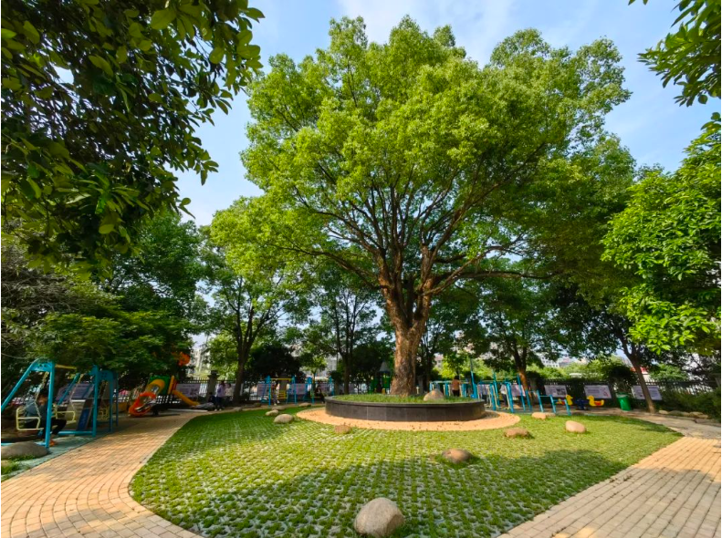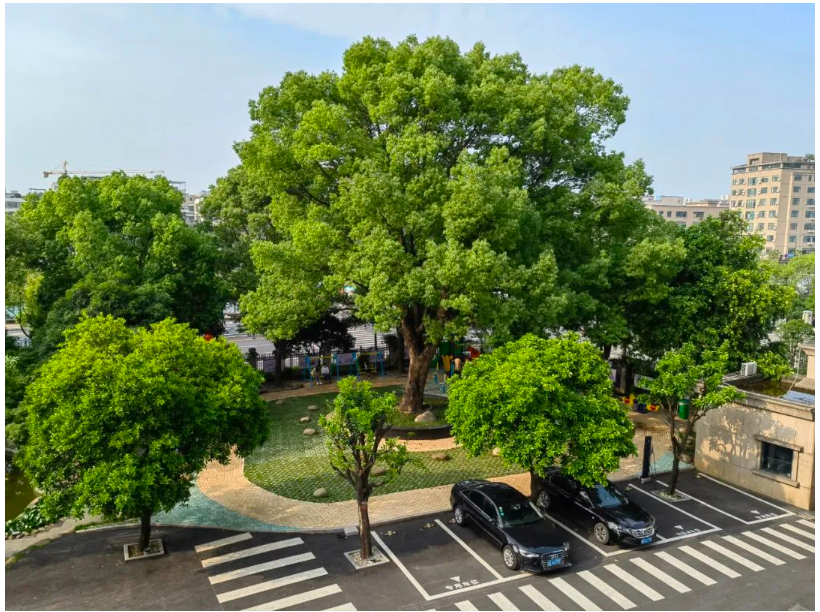 如今的“雙童1號樹”早已是枝繁葉茂,站在樹下,已經很難再拍出它全部的樣貌了!當家人樓仲平還在這里建設了一個“1號樹小公園”,為大家提供了工作之余休閑放松的好去處。