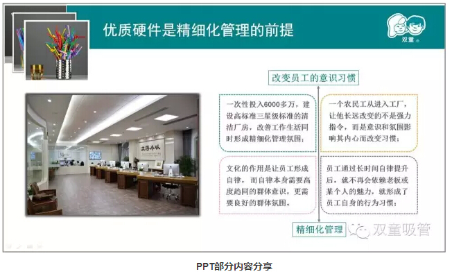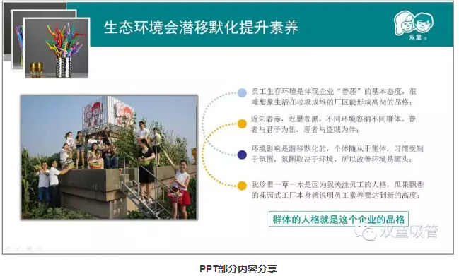 親愛的“雙童”粉絲們,你們還記得上堂課當(dāng)家人樓總提到其實九樓的空中菜園、廠區(qū)的綠化,甚至于公司墻上的標(biāo)語文化都和產(chǎn)品質(zhì)量有著很大的關(guān)系嗎?今天妞就圖文并茂展示給大家看看吧!
