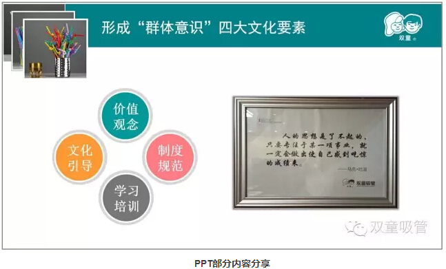 學(xué)習(xí)會進(jìn)行到最后,當(dāng)家人樓總說道:“其實形成好的習(xí)慣并不難,細(xì)節(jié)的東西,單就一件事情不難做,關(guān)鍵在堅持;簡單事情重復(fù)做就形成習(xí)慣,好的習(xí)慣逐漸形成就演變成了企業(yè)文化,久而久之就形成企業(yè)核心競爭力。其實是“細(xì)節(jié)”成就了“雙童”!”