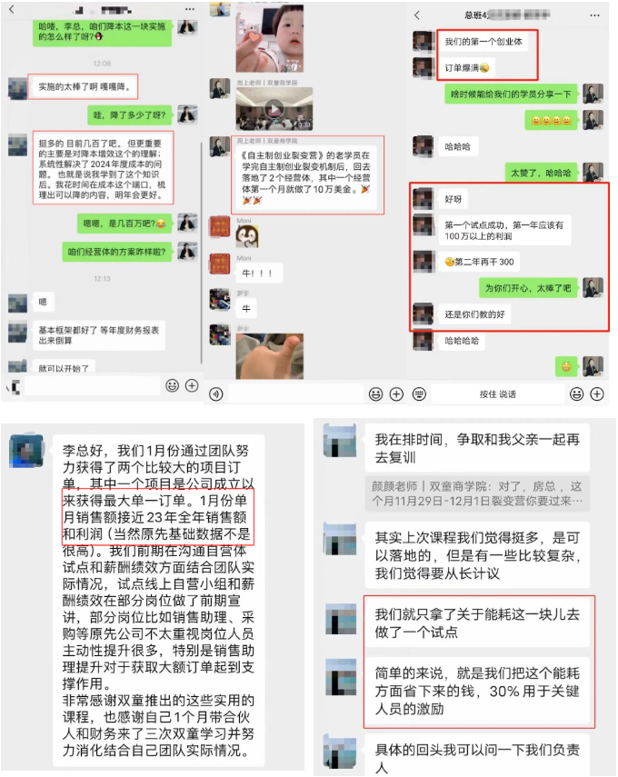 裂變機(jī)制在“雙童”取得了如此大的成就,為了幫助更多中小微創(chuàng)業(yè)者,早在2022年,雙童商學(xué)院就針對(duì)該機(jī)制打磨成《自主制創(chuàng)業(yè)裂變營(yíng)》課程,并不斷地升級(jí)迭代,現(xiàn)在該課程已經(jīng)是一套非常成熟的、可復(fù)制、可實(shí)踐的課程。目前已經(jīng)賦能了1600+家中小企業(yè)成長(zhǎng)!