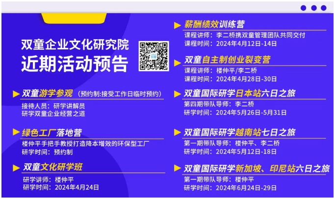 如果你也對“雙童”充滿好奇,也想賦能團隊共同成長,歡迎走進4月24日【雙童文化研學班】,與上百位優(yōu)秀的創(chuàng)業(yè)者一起學習!
