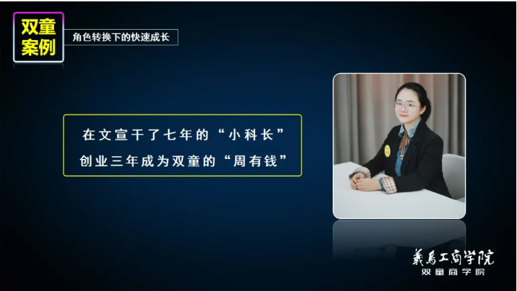 就像雙童平臺第五創(chuàng)業(yè)體總經(jīng)理周上,沒有被機(jī)制推動之前,她做了7年的“無憂無慮”的“小科長”,但通過裂變機(jī)制從員工向創(chuàng)業(yè)者角色轉(zhuǎn)換后,僅用3年的時(shí)間,自我驅(qū)動,成為雙童平臺成長最快的創(chuàng)業(yè)體總經(jīng)理!