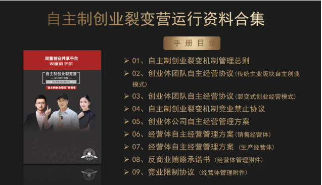 這不全是靠情感連接,因?yàn)橥ㄟ^裂變機(jī)制,平臺生態(tài)會幫創(chuàng)業(yè)體解決了創(chuàng)業(yè)所需的方方面面,從而大大減少運(yùn)營成本,優(yōu)秀的人才自然不會脫離平臺,自立門戶,所以對學(xué)員企業(yè)而言,通過學(xué)習(xí)裂變機(jī)制,才能更科學(xué)的留人機(jī)制!