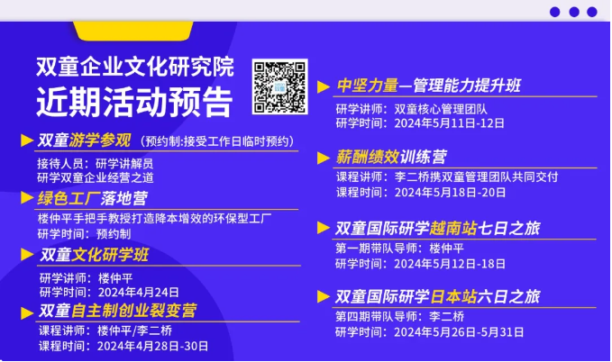 雙童創(chuàng)始人樓仲平在整個創(chuàng)業(yè)過程中,不僅親身走遍四十多個國家,而且還有著豐富的帶隊出海研學經(jīng)驗,僅2023年下半年就多次帶領(lǐng)近百位中國企業(yè)家深入日本企業(yè)考察,好評率超95%!
