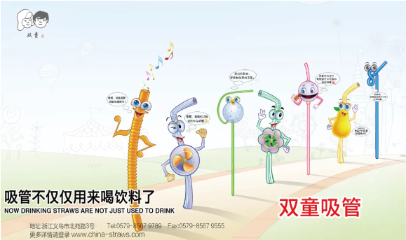 所以早在2004年,“雙童”就打破了“吸管就是喝飲料的”隱含假設,并通過要素拆解和組合去獲得一個“新組合”,從吸管單一的“喝水”功能向情感化、體驗化和娛樂化延伸,使產品售價和附加值都得到成倍增長,徹底讓“一根吸管”從“不可能”變成了“可能”。在2005年的戶外廣告和會刊封底廣告中