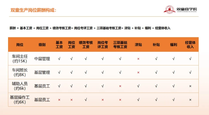 他首先會(huì)通過(guò)對(duì)雙童生產(chǎn)、銷售崗位薪酬構(gòu)成的分解,讓學(xué)員明白績(jī)效考核在薪酬體系中的重要性。之后再通過(guò)一一拆解“雙童”在實(shí)際運(yùn)行中針對(duì)不同層級(jí)員工績(jī)效考核方案的制定,啟發(fā)學(xué)員對(duì)標(biāo)到自己的企業(yè),參考借鑒。