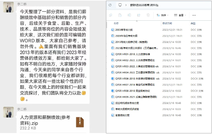 在課程交付完成之后,課研組踐行“掏家底”交付的原則,將“雙童”的薪酬績(jī)效體系和人力資源相關(guān)資料全部打包給到學(xué)員!