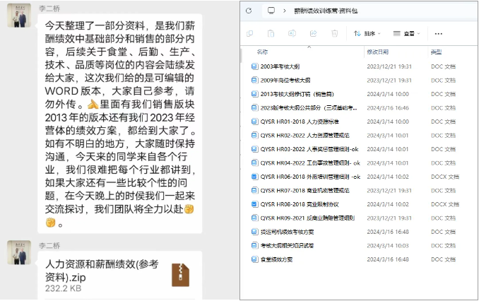在課程交付完成之后,課研組踐行“掏家底”交付的原則,將“雙童”的薪酬績(jī)效體系和人力資源相關(guān)資料全部打包給到學(xué)員!