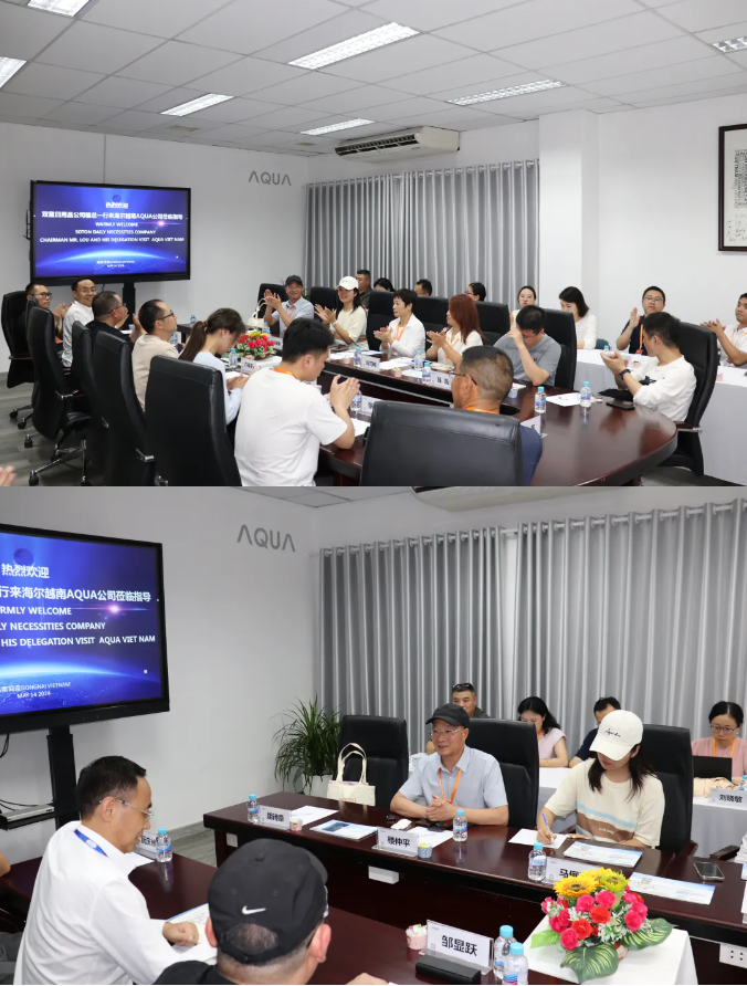從寶鵬工業(yè)區(qū)出來以后,樓仲平老師帶領(lǐng)研學(xué)班學(xué)員走進(jìn)了中國電器知名企業(yè)海爾在越創(chuàng)辦的AQUA公司,它是中國企業(yè)成功留在越南并融入本土化的企業(yè)代表,非常具有借鑒意義。