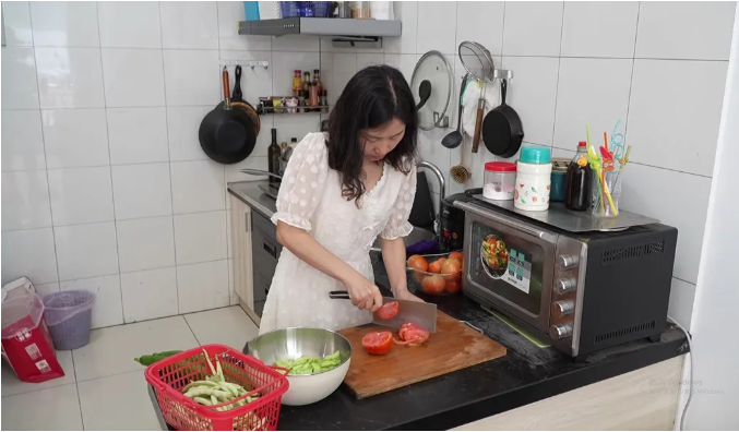 將剛剛采摘下來的黃瓜、西紅柿、豆角,清洗、去皮切塊、翻炒,不一會,一盤接一盤超新鮮的炒時蔬就被端上餐桌了,看著相當(dāng)美味!而且,這些蔬菜全都是純天然無公害的,吃起來非常安心,蔬菜本身的味道也更加濃郁!