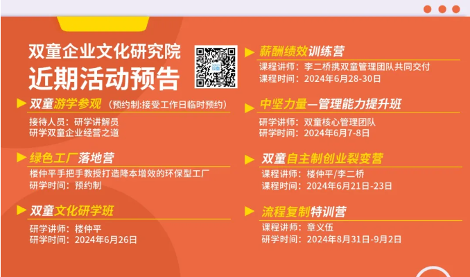 如果你也對(duì)“雙童”充滿好奇,也想賦能團(tuán)隊(duì)共同成長(zhǎng),歡迎走進(jìn)6月26日【雙童文化研學(xué)班】,與上百位優(yōu)秀的創(chuàng)業(yè)者一起學(xué)習(xí)!少量名額,歡迎咨詢鎖定!