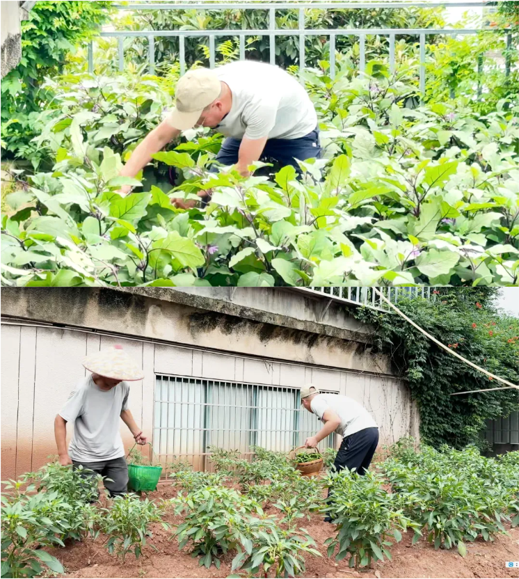 !而且,既然是“蔬菜大放送”,肯定是多多益善了~所以,等到這邊摘得差不多了,樓總又帶著“摘菜小分隊(duì)”轉(zhuǎn)移陣地,前往另一個屋頂菜園!
