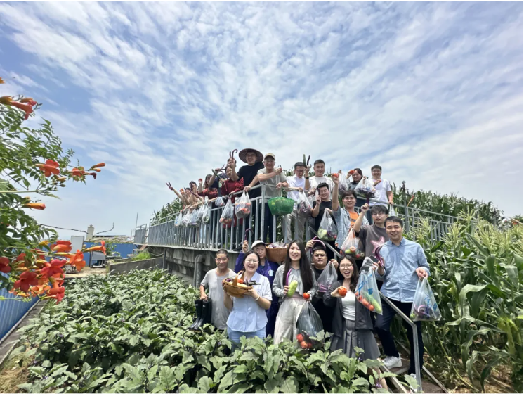一走進(jìn)菜園,當(dāng)家人樓總就帶著小伙們開啟“戰(zhàn)斗”模式,毫不夸張,只一會兒功夫,黃瓜、番茄被裝滿了一筐又一筐,這種在工廠里也能貼近自然的農(nóng)家生活,真的超幸福!