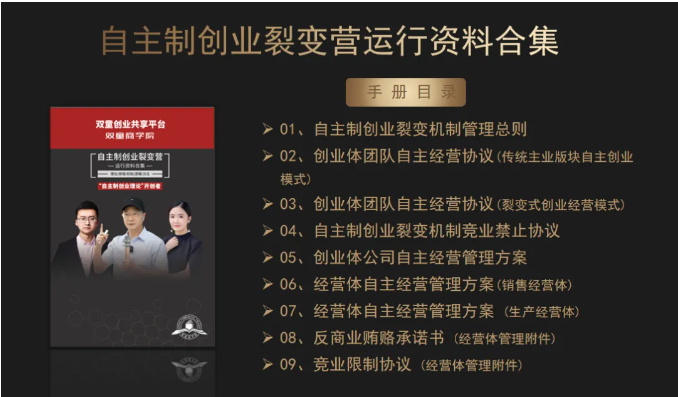 3、交付自主制創(chuàng)業(yè)裂變模式的各項(xiàng)規(guī)則、文本、合同等書面資料