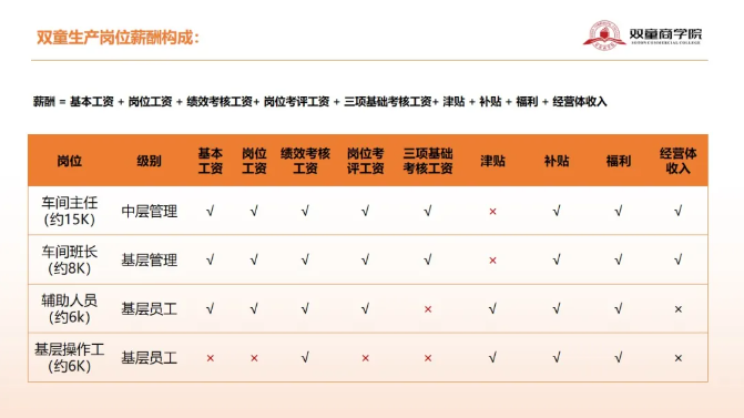 該課程是以“雙童”自身非常完善、成熟的薪酬績效結(jié)構(gòu)為依托,師資團(tuán)隊(duì)也非傳統(tǒng)意義上的學(xué)術(shù)派老師,而是由雙童的核心管理團(tuán)隊(duì)組成。他們從實(shí)踐的角度出發(fā),把各自在管理崗位上躬耕數(shù)十年的實(shí)戰(zhàn)經(jīng)驗(yàn)毫無保留地交付給學(xué)員。