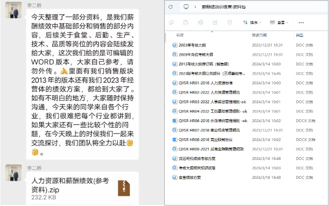 在課程交付完成之后,課研組踐行“掏家底”交付的原則,將“雙童”的薪酬績效體系和人力資源相關(guān)資料全部打包給到學(xué)員!