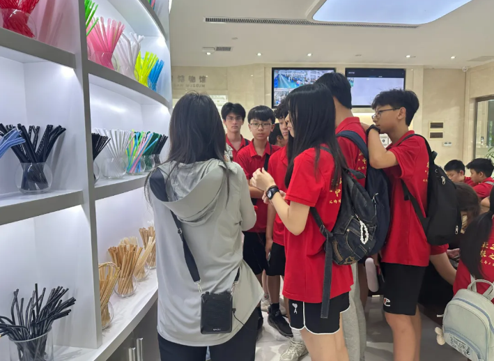 隨后,同學(xué)們深入吸管博物館展區(qū),逐一探索了吸管的歷史演變:從原始的秸稈吸管,到工業(yè)初期的紙制吸管,再到現(xiàn)代普及的塑料吸管,直至未來趨勢(shì)的聚乳酸可降解吸管,每一步都見證了人類智慧與環(huán)保意識(shí)的進(jìn)步。